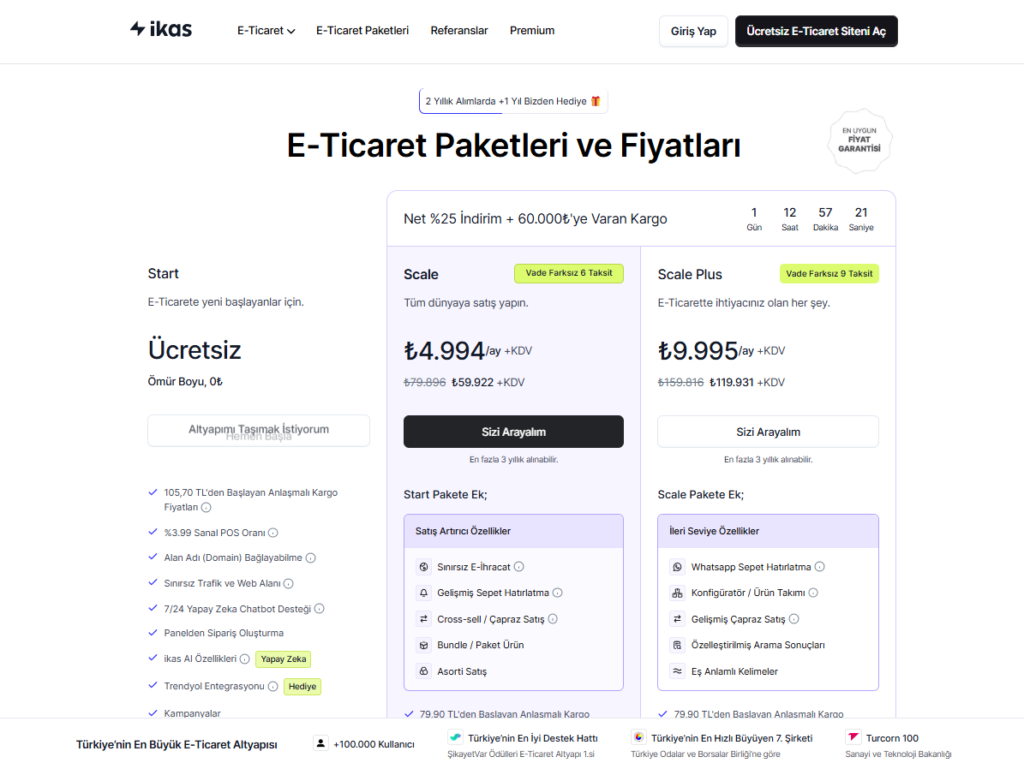 İkas’ın en çok merak edilen konularından biri de ücretsiz olup olmadığıdır. İkas, tamamen ücretsiz bir e-ticaret altyapısı değildir. Ancak yeni kullanıcılar için deneme süresi sunar. Bu deneme süresi sayesinde platformun tüm temel özelliklerini test edebilir, ihtiyaçlarına uygun olup olmadığını anlayabilirsiniz.